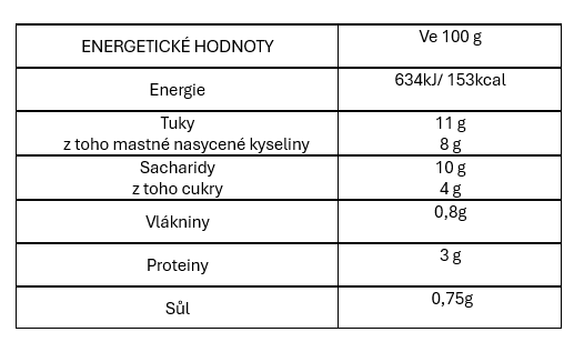 Složení: plnotučné mléko, smetana, mouka, hladká pšeničná mouka typ 00,
