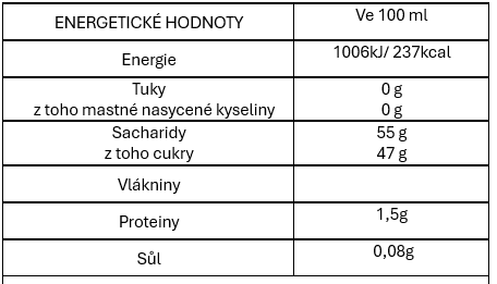 Složení: rektifikovaná koncentrovaná jablečná šťáva, italský jablečný ocet 30%, modifikovaný škrob, přírodní aroma. Obsahuje siřičitany. Bez lepku. Datum spotřeby: viz lahvička
