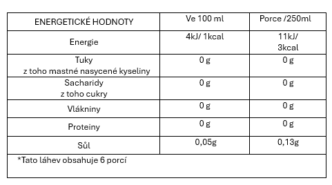 Složení: voda, oxid uhličitý, aromata, okyselovače (kyselina citrónová, kyselina ortofosforečná), sladidla (E952, E950, E95). sůl, korektor kyselosti: citrát sodný, barviva (E10, EI22). !Pozor: E10 a E122 mohou negativně ovlivňovat aktivitu a pozornost dětí.